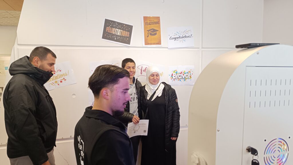 Les lauréats ont pu garder un souvenir photographique instantané de leurs enseignants, parents, camarades qu’ils ont pu mettre dans leur pochette avec leur diplôme.